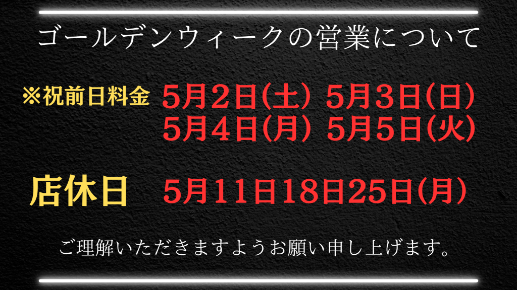 请参阅以下有关我们五月黄金周开放时间的信息。